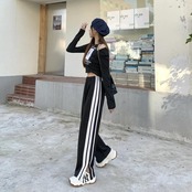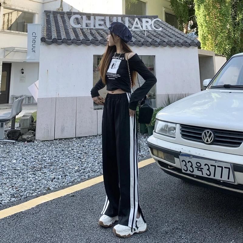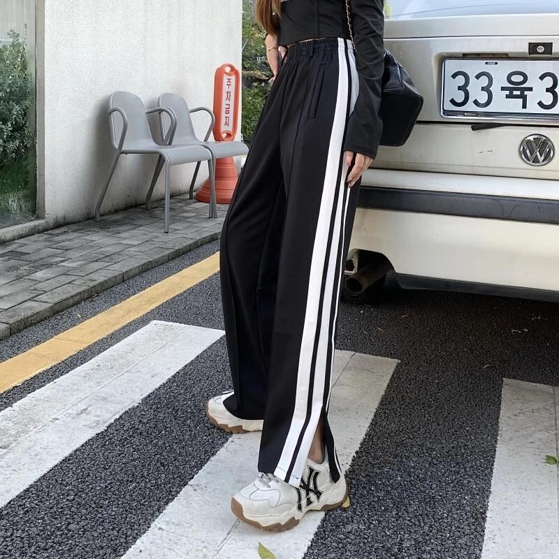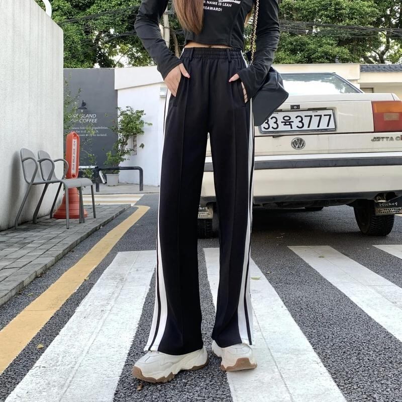 Gidyq-女性用スウェットパンツ,ハイウエストパンツ,韓国のファッション,ストライプのスリット,ゆったりとしたワイドレッグ,カジュアル,ストリートウェア,新しい夏のコレクション_347